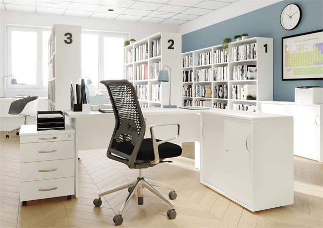 Szekrény, 5 rendező magas, nyitott, polcos, keskeny MAYAH "Freedom SV-03", fehér