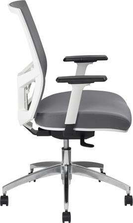 Irodai szék, karfás, hamuszürke szövet, feszített hálós háttámla, fehér váz, alumínium lábkereszt, MAYAH "Radar III"