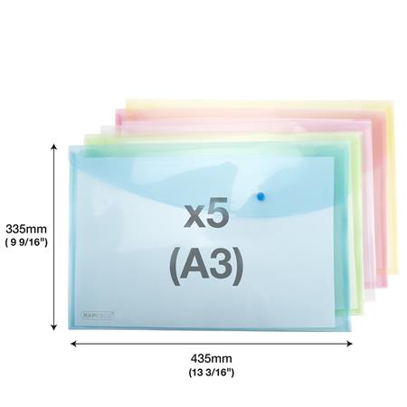KezdőlapIrodaszerekIratrendezés, archiválásIratvédő tasakok és borítékokIrattartó tasak, A3, PP, patentos, RAPESCO, vegyes színek