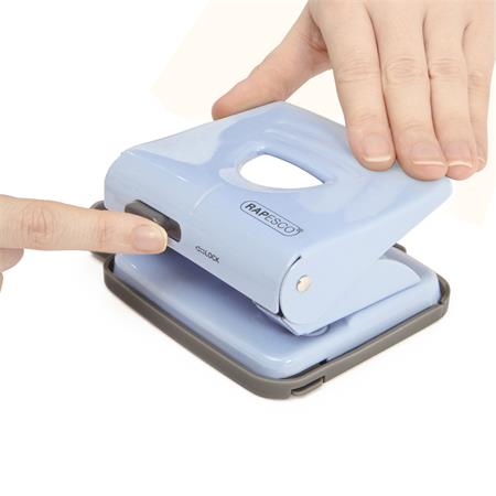 Lyukasztó, kétlyukú, 25 lap, fém, RAPESCO "825", világos rózsaszín