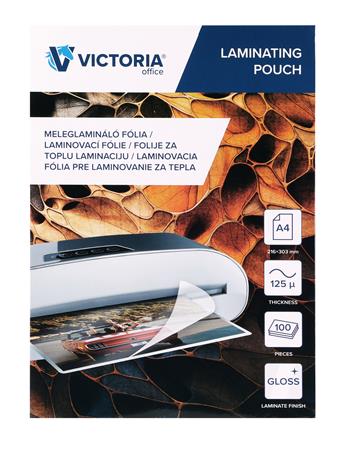 Meleglamináló fólia, 125 mikron, A4, fényes, VICTORIA OFFICE