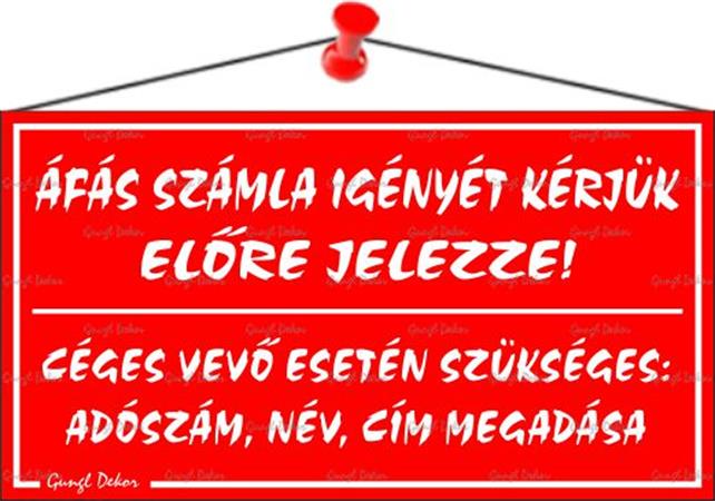 ÁFÁS számla igényét kérjük előre jelezze! információs tábla